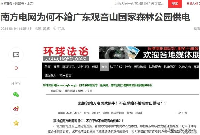 2024年6月27日发布了《豪横南方电网就是牛!不在乎给不给观音山供电?!》文章指出了南方电网的牛、豪、横、羞、耻。