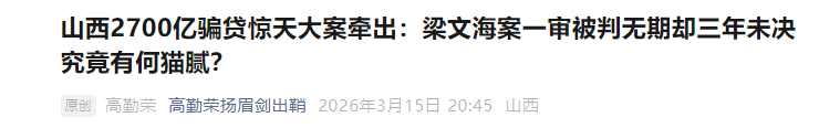 从田文军2700亿骗贷大案,到梁文海21.6亿骗贷案,山西金融领域的系统性违法犯罪,暴露了地方金融监管、司法公正等多个层面的深层次问题。